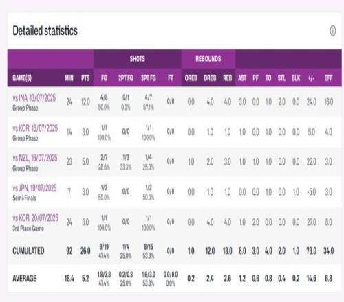 北京时间10月13日,2025年女篮全锦赛第二阶段宜宾高县赛区,山西女篮89-84险胜武汉盛帆女篮拿到二连胜,而武汉盛帆女篮则吞下二连败。这场比赛山西女篮核心翟若云彰显了大心脏特质,末节连续取分帮助山西涉险过关。 这场比赛翟若云打了35分钟,21中7,三分11中4,拿到22分8篮板1助攻仅2失误,命中率33.3%,三分命中率36.4%,武汉盛帆对翟姐已经进行双人包夹,但最终还是未能将她限制在20分以下。 山西全队8人轮换,先发有3人上双,替补席的张懿35分钟,15中8,三分10中5,拿到24分8篮板2助攻,她成为此役的超级奇兵。 当然山西的基本盘还是翟若云,首战浙江女篮是27分12篮板1抢断,此役是22分8篮板,两场比赛合计拿到49分20篮板,场均24.5分10篮板0.5助攻,命中率38.6%,三分命中率28.5%,她在国内联赛就是被包夹的水准。 众所周知27岁的翟若云大器晚成,她今年才入选宫鲁鸣领导的中国女篮一队,她在亚洲杯舞台上展现了个人的顶级投射水准,场均18.4分钟,拿到5.2分2.6篮板1.2助攻0.4抢断0.2盖帽,命中率47.4%,三分命中率53.3%,她是中国队外线最神准的点。 翟若云在中国队只是一个投手,但她在全锦赛是超级球星,第一阶段附加赛就是依靠她才拿到了第二阶段淘汰赛的资格,第一阶段翟姐场均28.7分8.3篮板3.3助攻1.7抢断十分炸裂,上赛季的WCBA她还是当选全明星北区票王。 |