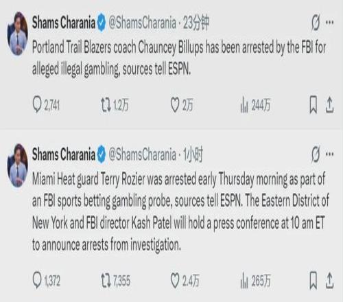 北京时间10月23日晚,NBA名记Shams报道,开拓者主教练比卢普斯因参与非法赌博,被FBI(美国联邦调查局)逮捕。热火后卫罗齐尔因参与赌球,也被FBI逮捕。另据NBC等媒体报道,FBI此次调查跟比卢普斯在开拓者执教无关。 掘金随队记者Vic Lombardi发文:“多希望一切都是假的!昌西是我兄弟,也是丹佛的骄傲,他最不该发生这种事!”罗齐尔被调查的比赛发生在2023年3月23日,当时他在黄蜂效力。黄蜂和鹈鹕的比赛中,罗齐尔只打了10分钟伤退。 在那场比赛之前,一个职业赌徒围绕罗齐尔下注30笔,均买罗齐尔的下盘。随着罗齐尔提前伤退,该赌徒的30笔赌注全部命中,大赚了一笔!罗齐尔现有合同4年9600万美元,生涯至今总薪水1.33亿美元,不知道他当时获利了多少。 Shams撰文披露了更多细节:比卢普斯和罗齐尔被逮捕,是两个不同的案件。罗齐尔是伙同他人下注比赛,比卢普斯则涉及与黑手党有关的非法扑克经营,而不是直接下注比赛。今年4月份,比卢普斯刚跟开拓者签下多年续约合同。 比卢普斯球员时期,在NBA打了17个赛季,总收入超过1.06亿美元。如今在开拓者当主教练,每年也有四五百万美元。除了比卢普斯和罗齐尔,前NBA球员达蒙-琼斯也因涉及赌博指控今天被捕。完整名单将在北京时间今晚10点公布! 中国球迷最关心的是无疑是比卢普斯,他跟杨瀚森是同一家经纪公司,也很看好杨瀚森。如果比卢普斯被开拓者解雇,会不会对杨瀚森有影响?有可能。当年姚明在火箭主教练汤姆贾诺维奇不要求他增重,换成范甘迪后就不一样了。 关于案件的更多细节,大家再等等后续报道! |