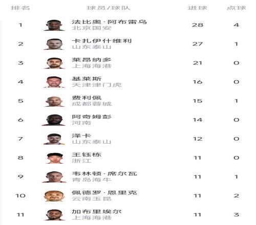 射手榜:金靴,山东泰山的卡扎伊什维利,银靴,北京国安的阿布雷乌。本土最佳射手:浙江的王钰栋! |