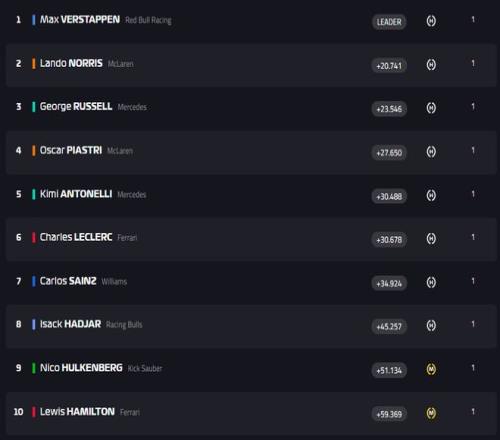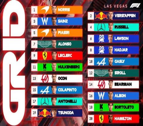 北京时间11月23日中午,2025赛季F1迎来拉斯维加斯大奖赛的正赛争夺!最终,维斯塔潘依靠着起步的超越拿到分站冠军,诺里斯获得第二,拉塞尔获得季军。至此,维斯塔潘积分来到366分,诺里斯积分来到408分,二者之间的差距被缩小到42分。 拉斯维加斯大奖赛 正赛赛况 2025赛季世界一级方程式锦标赛 拉斯维加斯大奖赛 赛道信息 拉斯维加斯大奖赛 C5-C4-C3 在昨天结束的排位赛中,诺里斯强势夺得杆位,维斯塔潘获得第二在头排发车。而塞恩斯发挥出色排在第三,和拉塞尔处在第二排发车,另一位麦克拉伦车手皮亚斯特里仅排在第五位。而因为受到天气影响,安东内利、汉密尔顿在Q1被淘汰,这显然给正赛带来了更多变数。 角田维修区起步 汉密尔顿升至第19位起步 前十位车手均使用黄胎起步,后十位车手除了斯特罗尔、奥康和比尔曼使用中性胎、安东内利使用软胎之外,其余车手都使用硬胎起步。 暖胎圈汉密尔顿起步差点出现问题 五盏红灯熄灭,比赛正式开始!诺里斯的起步极具侵略性,但是在一号弯切线发力过猛丢掉了自己的入弯线路,身后维斯塔潘抓住机会直接完成超越来到第一!而因为节奏被影响,诺里斯此后还被拉塞尔超越掉到第三名。 车阵中游和后方同样在一号弯发生两起碰撞,劳森碰上身前的皮亚斯特里后前翼受损掉至队尾,而博托莱托在同样位置拦腰撞上斯特罗尔,二者双双退赛......乱战之中,汉密尔顿笑纳大礼,从19位起跑的他瞬间升至第13位! 另一位法拉利车手勒克莱尔从第9位起步,连续超越阿隆索和比尔曼后来到第7名。 第9圈,维斯塔潘已经将拉塞尔甩出自己的DRS区独占鳌头,诺里斯的速度则越来越慢,已经被拉塞尔拉开到2.7秒左右。车阵中游,汉密尔顿陷入腹背受敌的境地,而“极其凶猛”的勒克莱尔则不断缩小与身前的皮亚斯特里的距离,终于在第13圈和第14圈分别完成了对皮亚斯特里和哈贾尔的超越。 第15圈,阿尔本在超越汉密尔顿的过程中前翼受损,赛会过了2圈才出动虚拟安全车。 第23圈,诺里斯和塞恩斯纷纷进站。前者出站后被拉塞尔超越位列第四,塞恩斯出站后从此前第三名的位置掉到皮亚斯特里身后位列第十。 第25圈,勒克莱尔进站!出站后排在第九位,身处皮亚斯特里和塞恩斯之间。 随后一圈维斯塔潘进站,虽然手握23秒以上的优势,但是进站换胎出现失误,出站后已经被拉塞尔追到了身后1.6秒左右。 第30圈,搭载硬胎的汉密尔顿进站换上中性胎,出站后排在第十名,他还能向前争取更好的名次。 第35圈,诺里斯已经追到拉塞尔身后,在14号弯前利用DRS抽头完成超越。来到第二名之后,他距离身前的维斯塔潘还有5秒不到的差距。 第37圈,阿尔本退赛。 第38圈,由于抢跑将被罚时5秒的安东内利处在第四名的位置,与身后的皮亚斯特里和勒克莱尔组成了“DRS高铁”。这一圈,皮亚斯特里想要在14号弯发起进攻,但搭载36圈硬胎的安东内利强势防守,不给对手任何机会超越自己。 随后几圈因为有罚时的存在,安东内利依旧不减速快步向前,而皮亚斯特里也放慢了追击的步伐。 最终,维斯塔潘第一个冲过终点拿到25个积分!诺里斯紧随其后获得第二,拉塞尔获得季军。 安东内利第四个冲线,但因罚时排名下滑,此后几名冲线的分别是:皮亚斯特里、勒克莱尔、塞恩斯、哈贾尔、霍肯伯格和汉密尔顿。 赛后官方页面显示安东内利处在第五名 需等待最终确认的排名 |