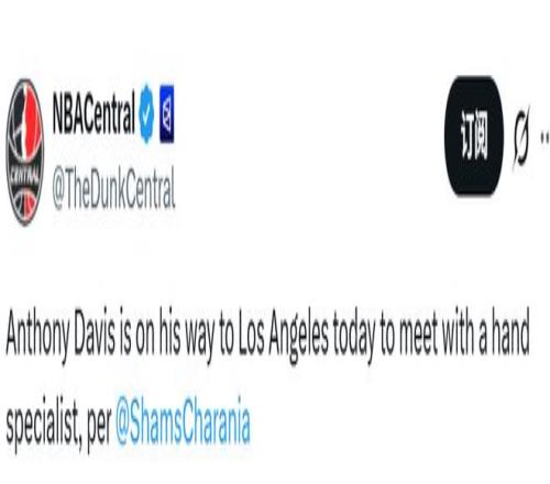前,名记Shams率先报道,戴维斯预计将接受左手韧带修复手术,缺席赛场数月。戴维斯对Shams的报道予以否认,并通过社交媒体进行反驳。“大家最好别再相信这些平台上的谎言了。”戴维斯在社媒上写道,随后又在多条援引这一突发新闻的帖子下回复“谎言”二字。在今天将前往洛杉矶与手部专家会面后,浓眉确定无需接受手术。Shams随后也修正了自己的报道,不过未来六周,浓眉是肯定无法出场了。